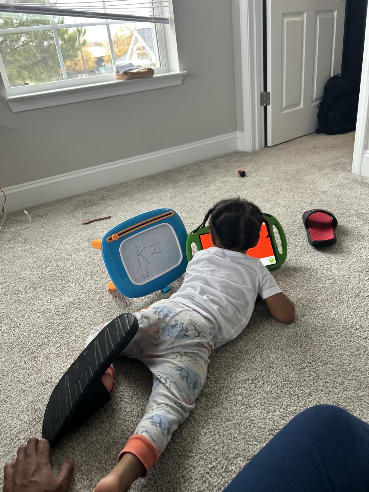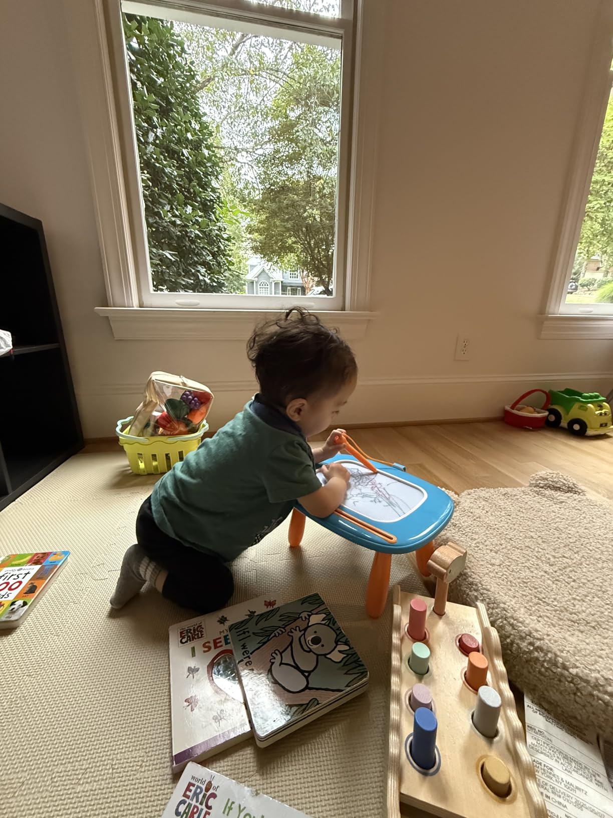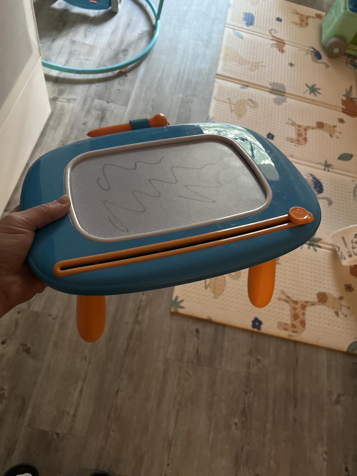 My toddler loves this drawing board! The stylus stays attached, and the slide-to-erase makes it so easy to start fresh. I’ve already seen big improvements in her pencil grip and shapes. A must-have for car rides and quiet time!”